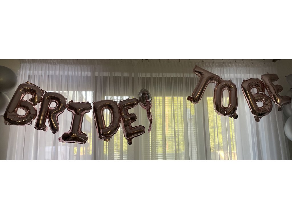 Balóny s nápisom „Bride to Be“, ktoré dokonale doplnia svadobné oslavy.