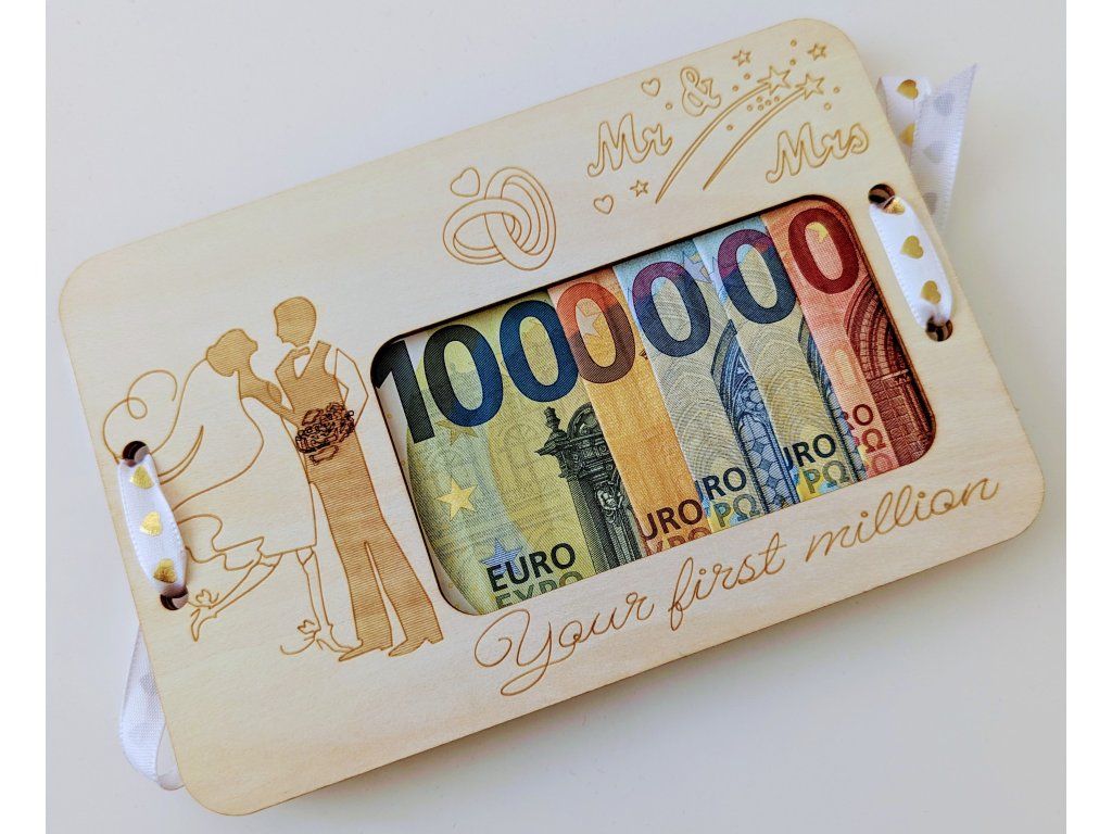 Vtipný a originálny nápad: Darujte im symbolický „prvý milión“ do spoločného života. Je to skvelý „icebreaker“ pri odovzdávaní darov. 🥂😂