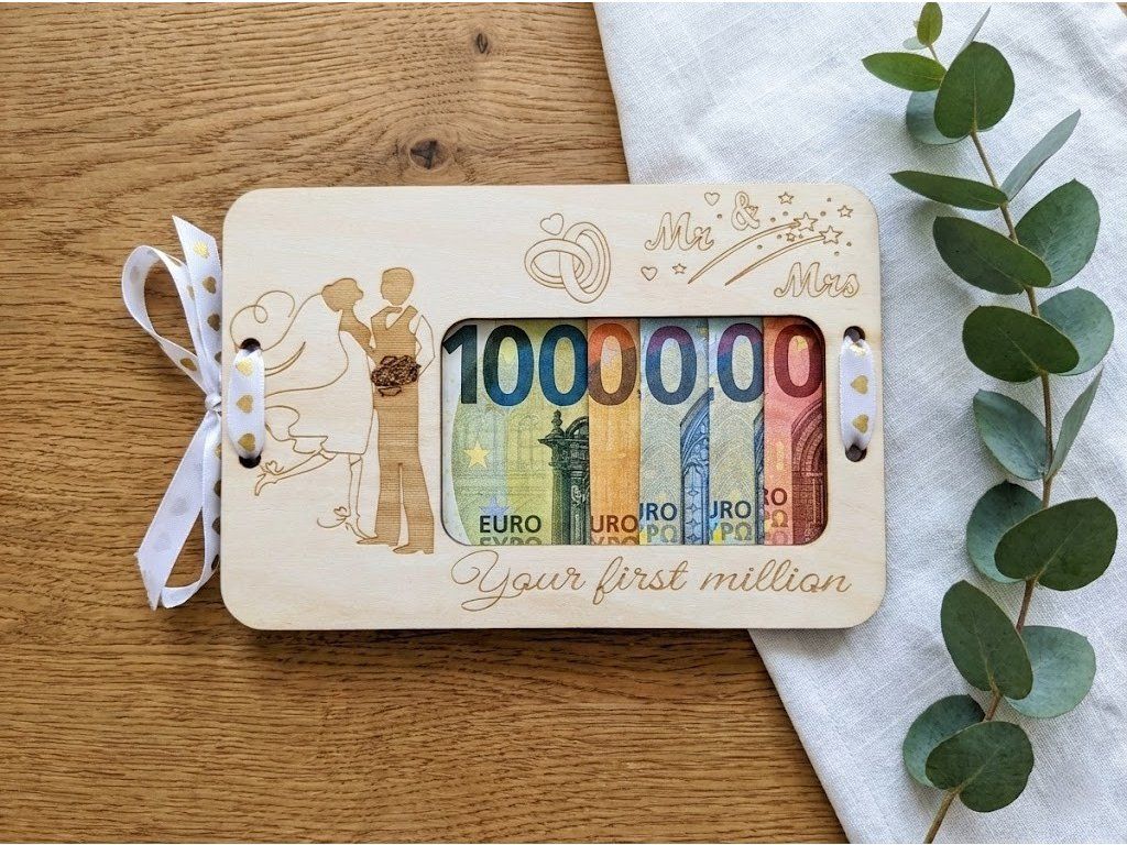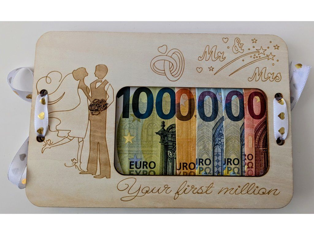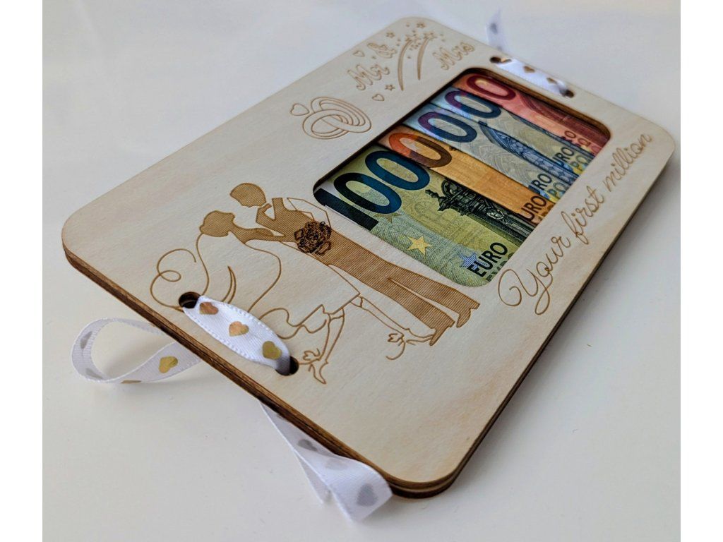Drevená obálka na peniaze "Your First Million" – Originálny svadobný dar
