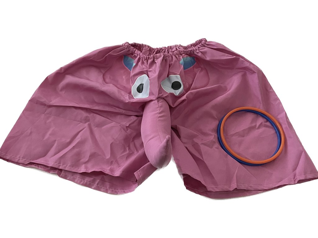 Kompletný set: V balení nájdete elastické slipy s chobotom a sadu farebných kruhov na hádzanie.
