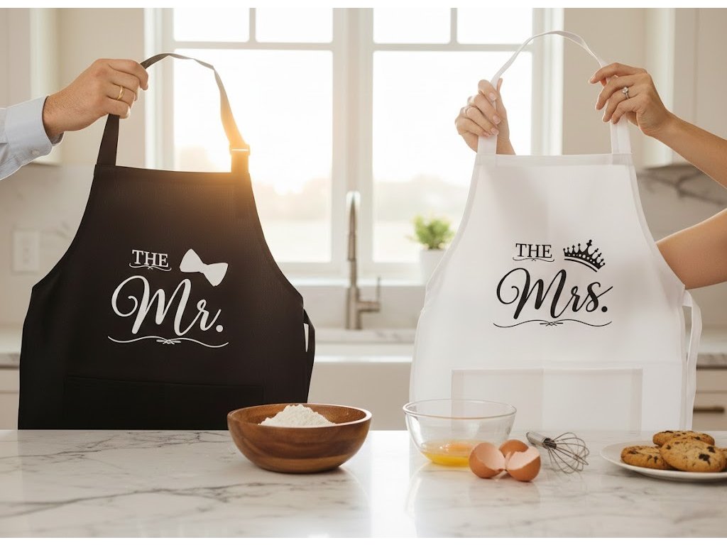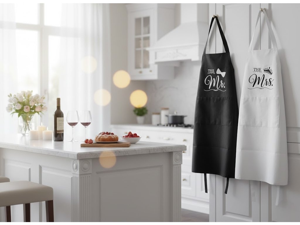Hľadáte darček, ktorý neskončí na poličke, ale bude sa denne používať? Naša sada kuchynských zástery pre pár spája funkčnosť s romantickým dizajnom. Je to skvelý spôsob, ako osláviť váš nový spoločný status hneď po svadbe.