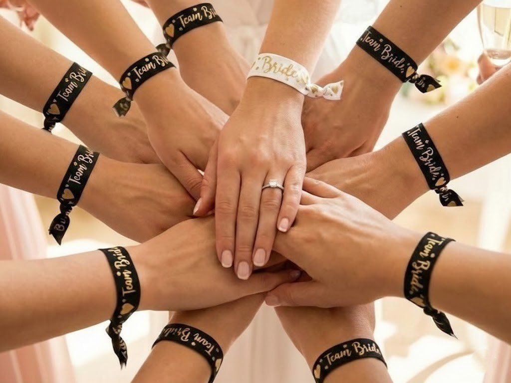 ⚫ 10x Čierny náramok s nápisom "Team Bride" – pre družičky, svedkyňu a celý tím snov.