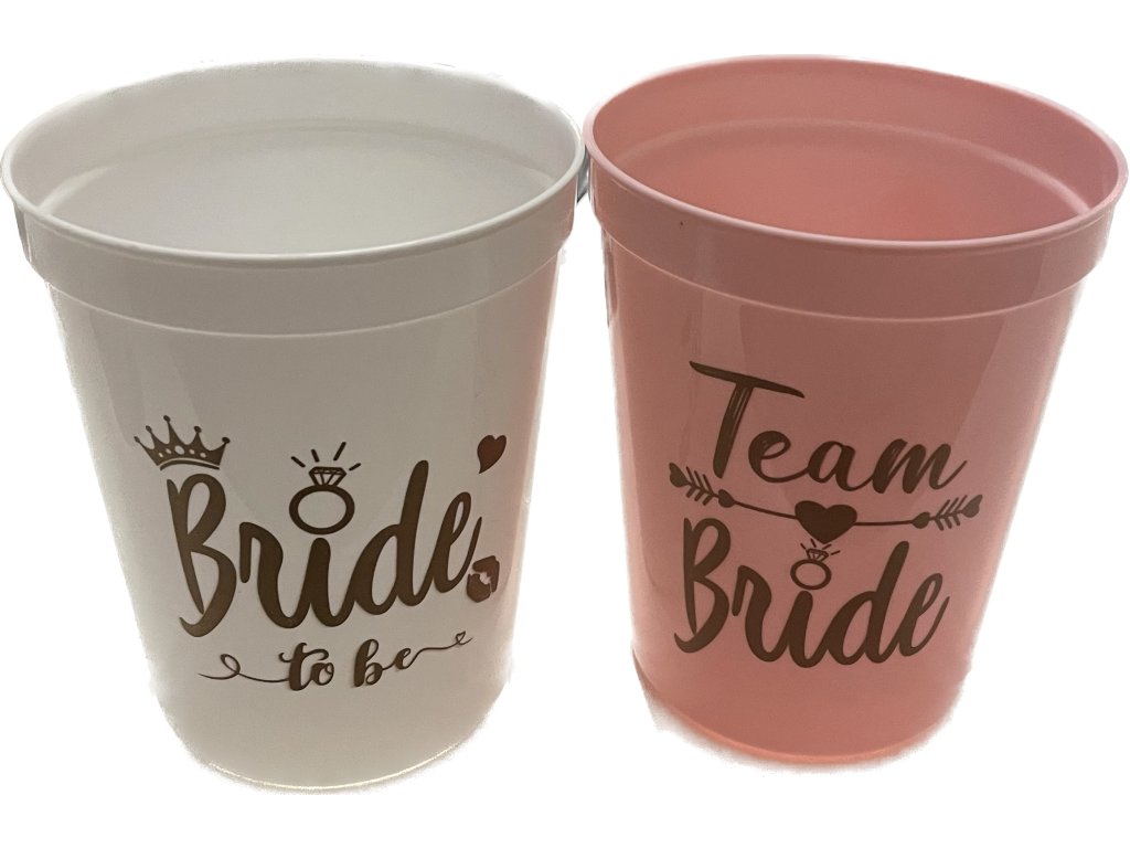 9x Ružový pohár s nápisom "Team Bride": Štýlové označenie pre tie najlepšie priateľky a družičky.
