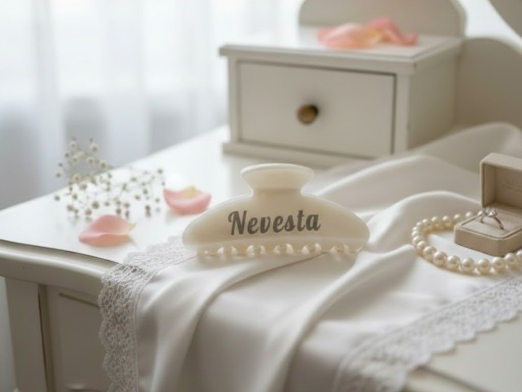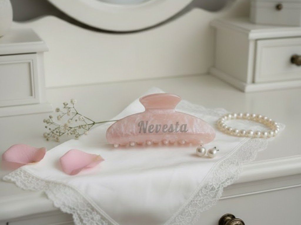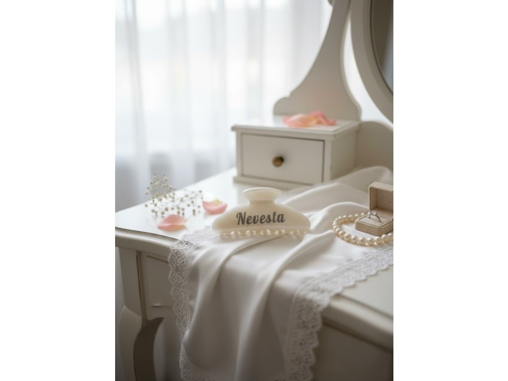 Štýlový a praktický detail pre každú nevestu! 👰✨ Tento elegantný perleťový štipec s nápisom "Nevesta" je dokonalým doplnkom na svadobné ráno, líčenie či rozlúčku so slobodou. Pevne drží účes a vyzerá úžasne na fotografiách z príprav. Vyberte si svoju obľúbenú farbu – nežnú bielu alebo romantickú ružovú. Skladom v Prešove, odosielame ihneď!