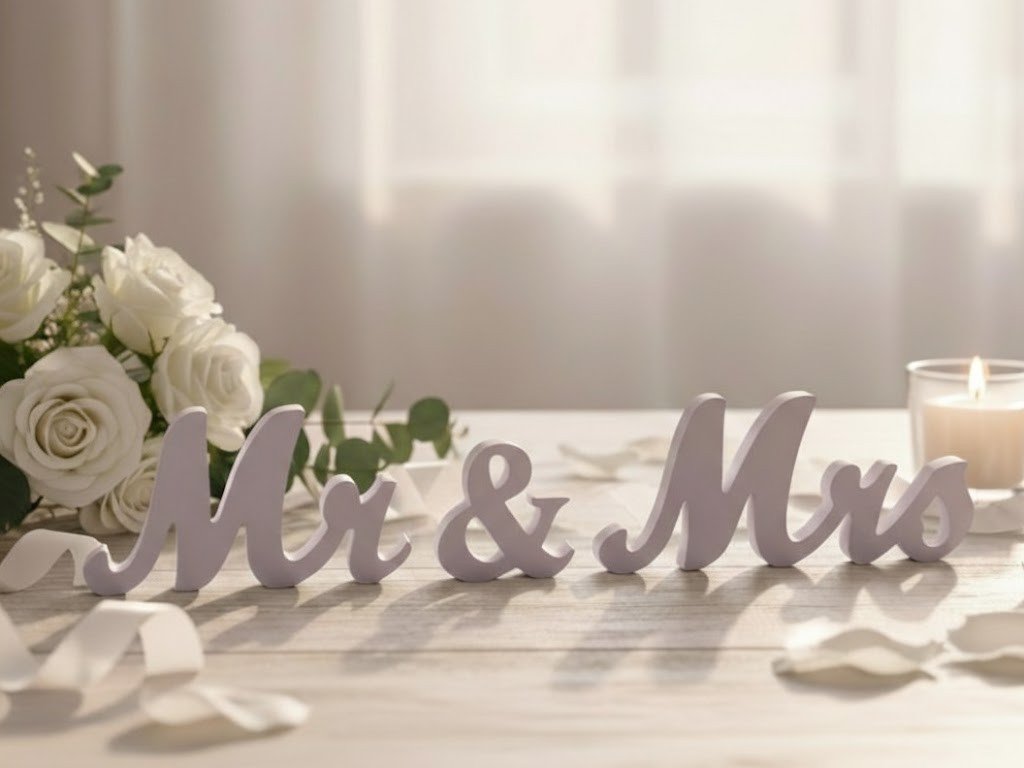 🌿 Svadobný nápis Mr & Mrs – Dotyk prírody pre váš veľký deň