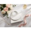 Klasická biela (bez nápisu): Čistá elegancia. Hladký, minimalistický dizajn, ktorý sa hodí ku každej róbe a využijete ho aj na iné spoločenské udalosti po svadbe.