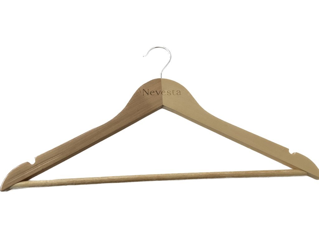 Vešiak je vyrobený z pevného dreva, ktoré spoľahlivo podrží svadobné šaty bez poškodenia. Jeho konštrukcia je navrhnutá tak, aby šaty zostali dokonale vystavené – ideálne na fotenie detailov počas svadobného rána.