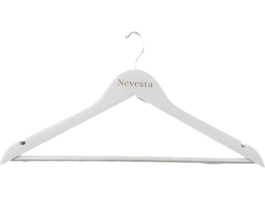 Tento nádherný svadobný vešiak je navrhnutý s dôrazom na ženskosť, detail a výnimočnosť svadobného okamihu. Jemné biele prevedenie s romantickým nápisom „Nevesta“ dokonale ladí so svadobnými šatami a dodáva im ešte väčší šmrnc. Je to doplnok, ktorý podčiarkne krásu nevesty už od prvých príprav.