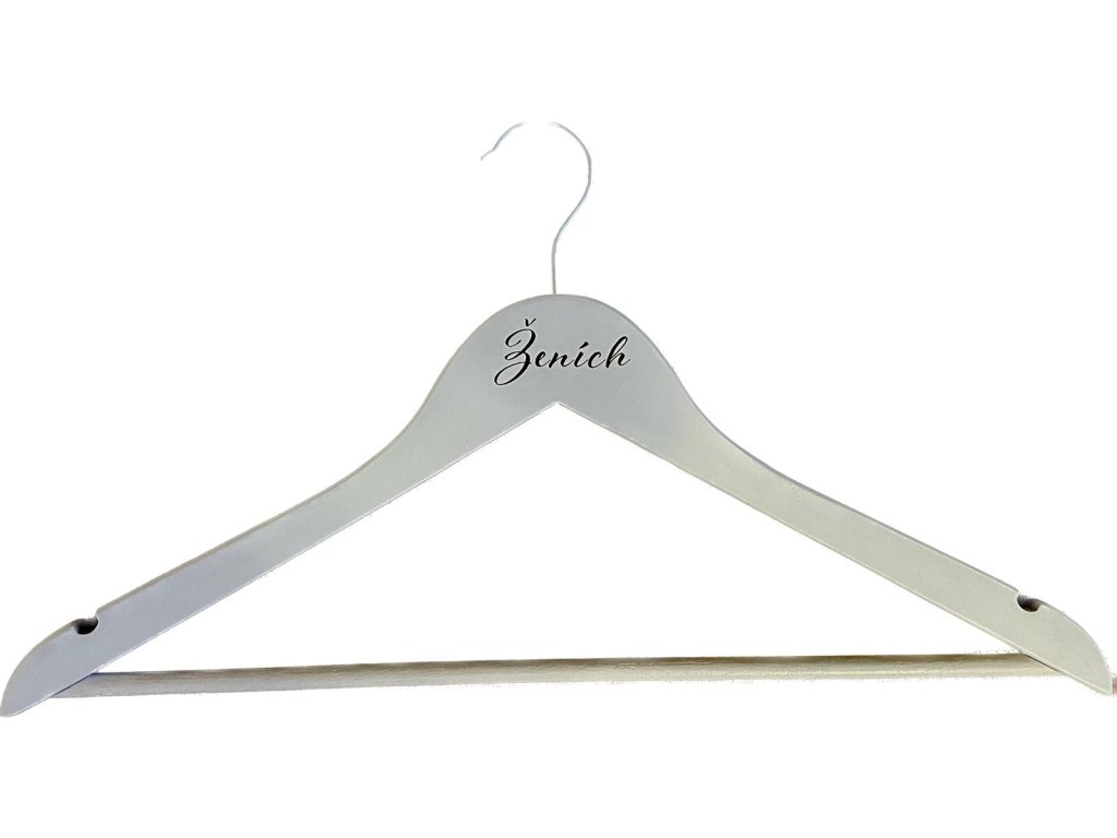 Biely vešiak s nápisom „Ženích“ nie je len doplnkom – je to súčasť príbehu. Symbol štýlu, elegancie a lásky, ktorý podčiarkne jedinečnosť vášho svadobného dňa.