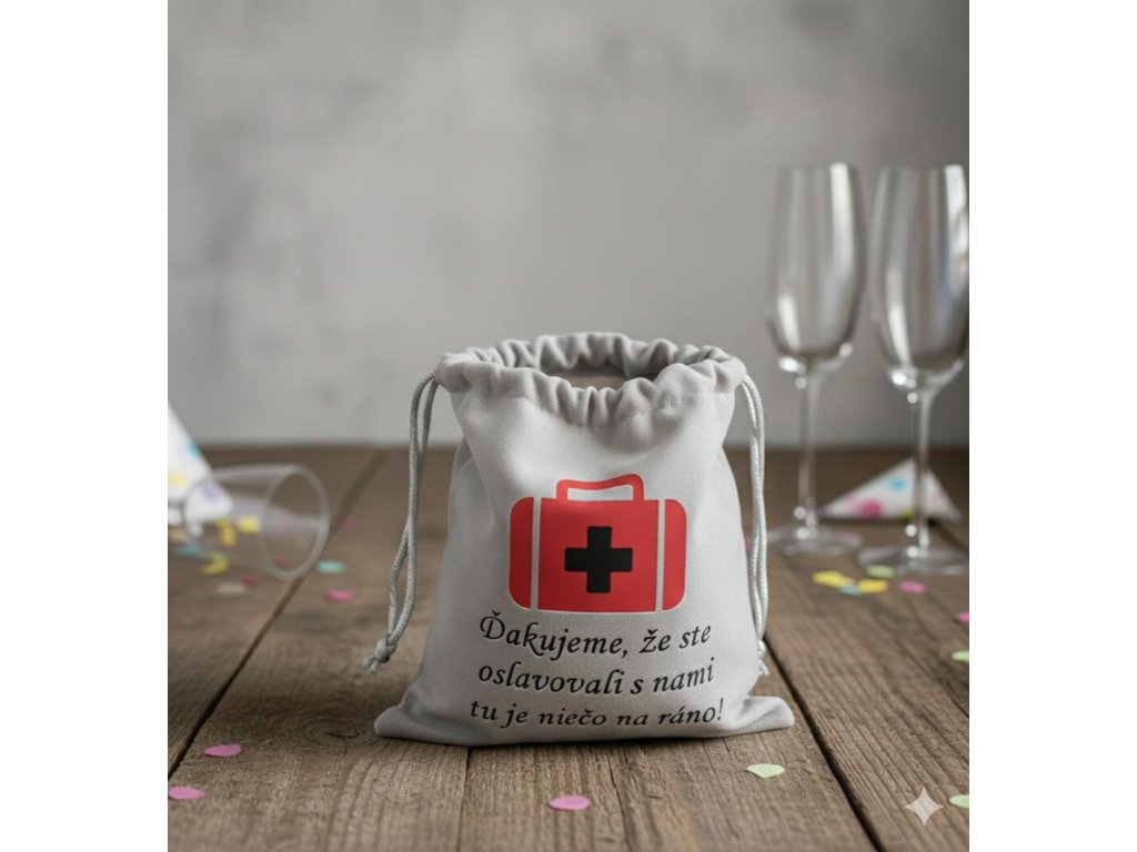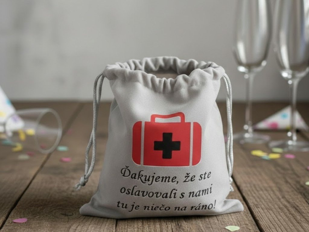 Doprajte hosťom nielen skvelú zábavu, ale aj bezbolestné ráno! 🚑 Vtipné a praktické vrecúško, do ktorého im zabalíte 'záchranu' po prebdeni noci. Originálny darček, za ktorý vám ráno poďakujú.