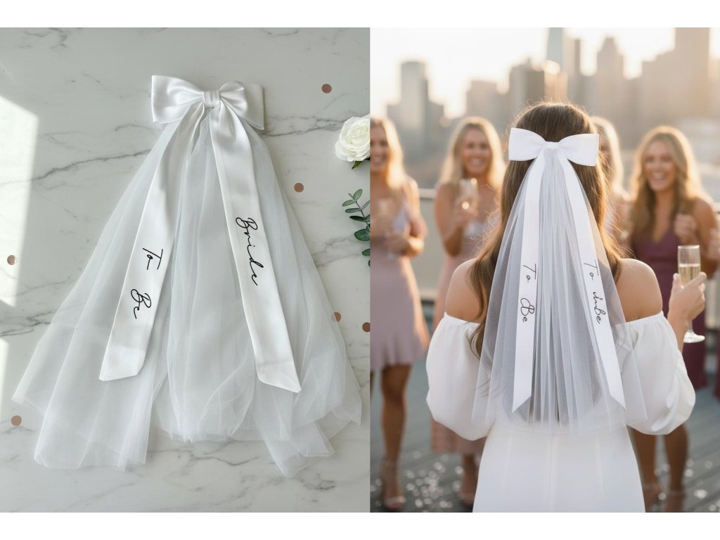 Toto je doplnok, ktorý si budúca nevesta naozaj užije! Pripravte pre ňu rozlúčku, na ktorú nezabudne, a začnite tým, že ju "korunujete" týmto štýlovým závojom.